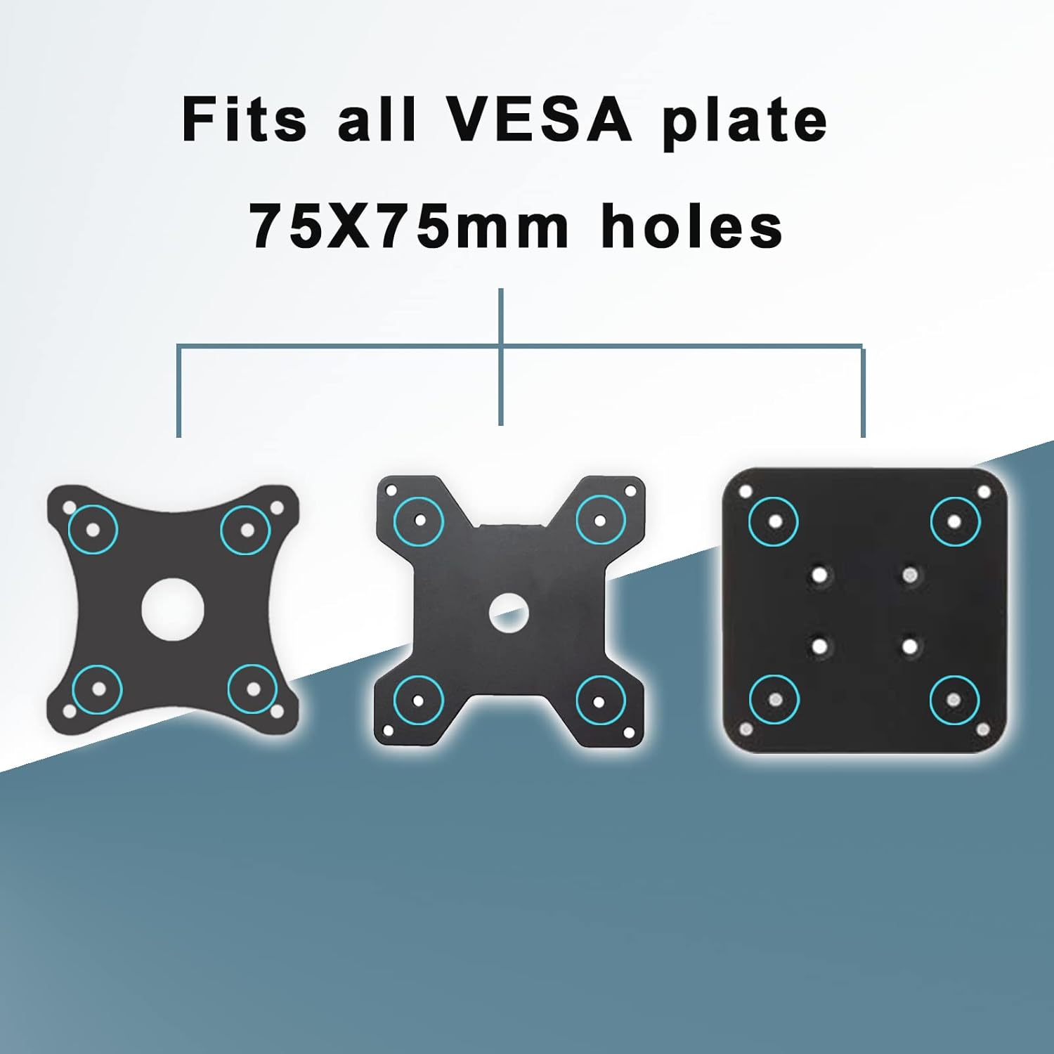 Universal Adapter: Suitable for 13-27 inch monitors with a 6.6X5.8 inch flat surface area on the back. Fits all VESA plate holes, install through 75X75mm holes.