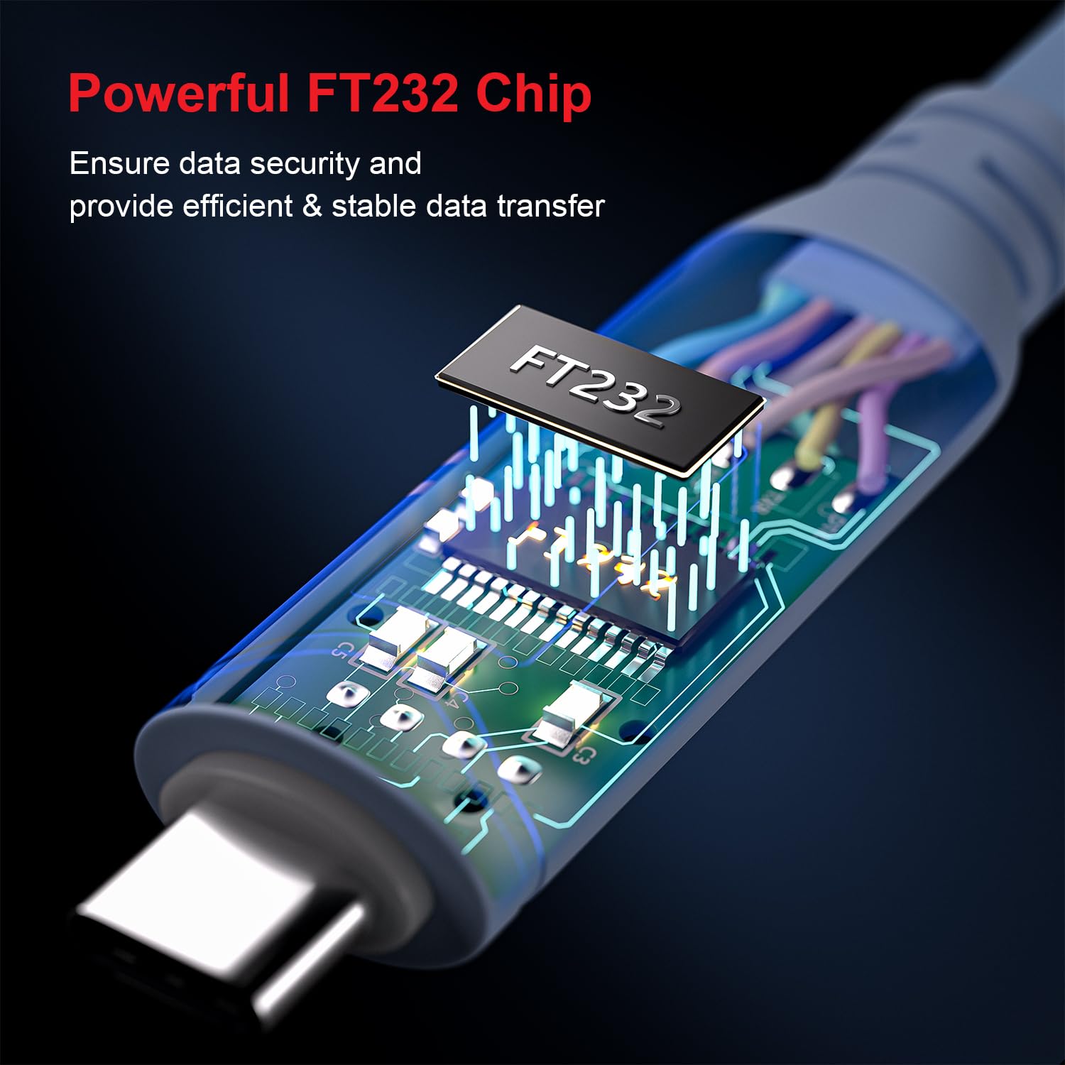 FT232R chip + RS232 Level Shifter, Compatible with any laptop/PC with a USB-C Port.