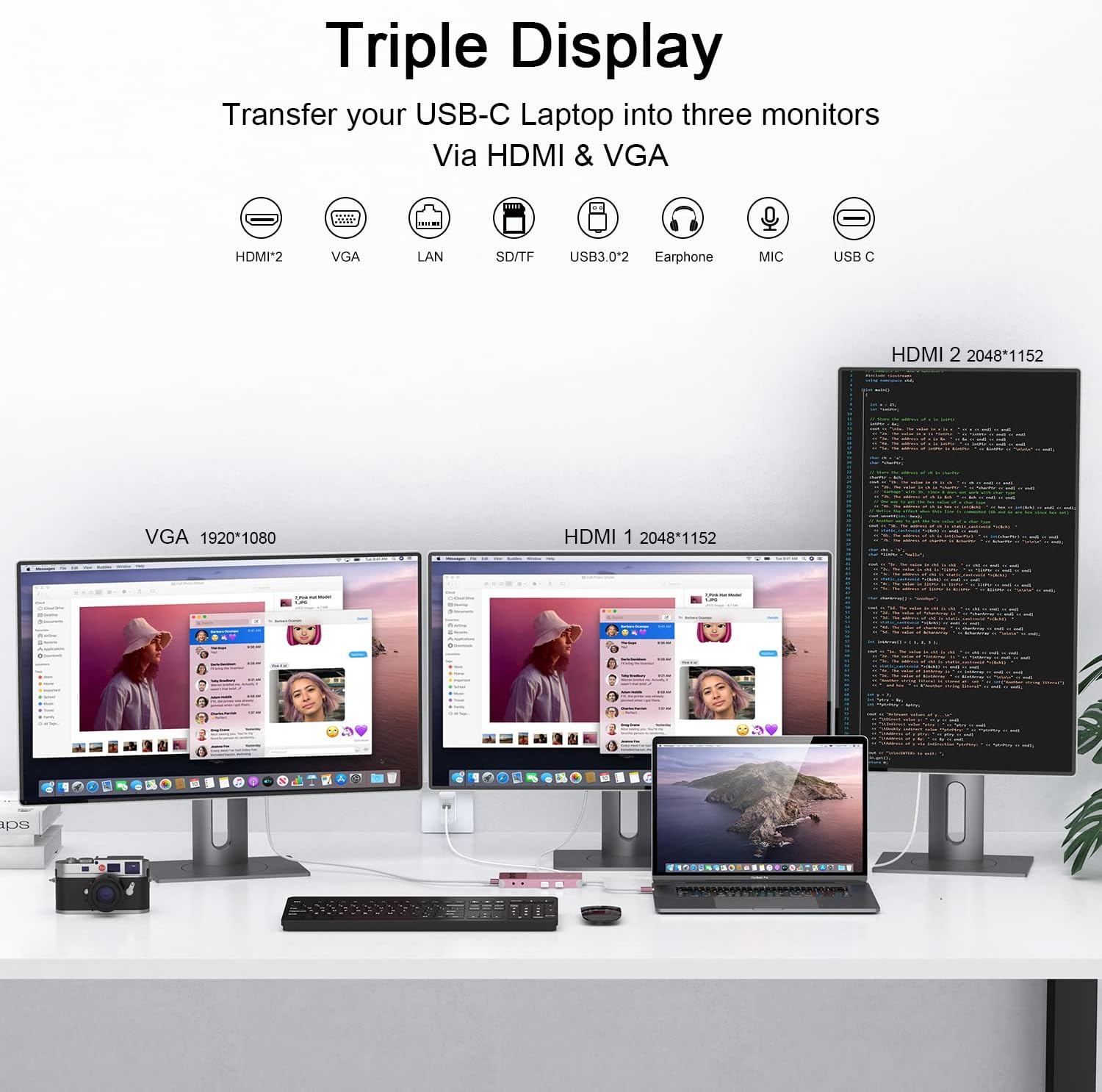 USB C to HDMI Adapter: Giq mac dongle mirror or extend your screens and directly stream HP UHD 30Hz or Full HD 1080p video to HDTV, monitor or projector.(Before using this docking station, please download the latest Displaylink drive)