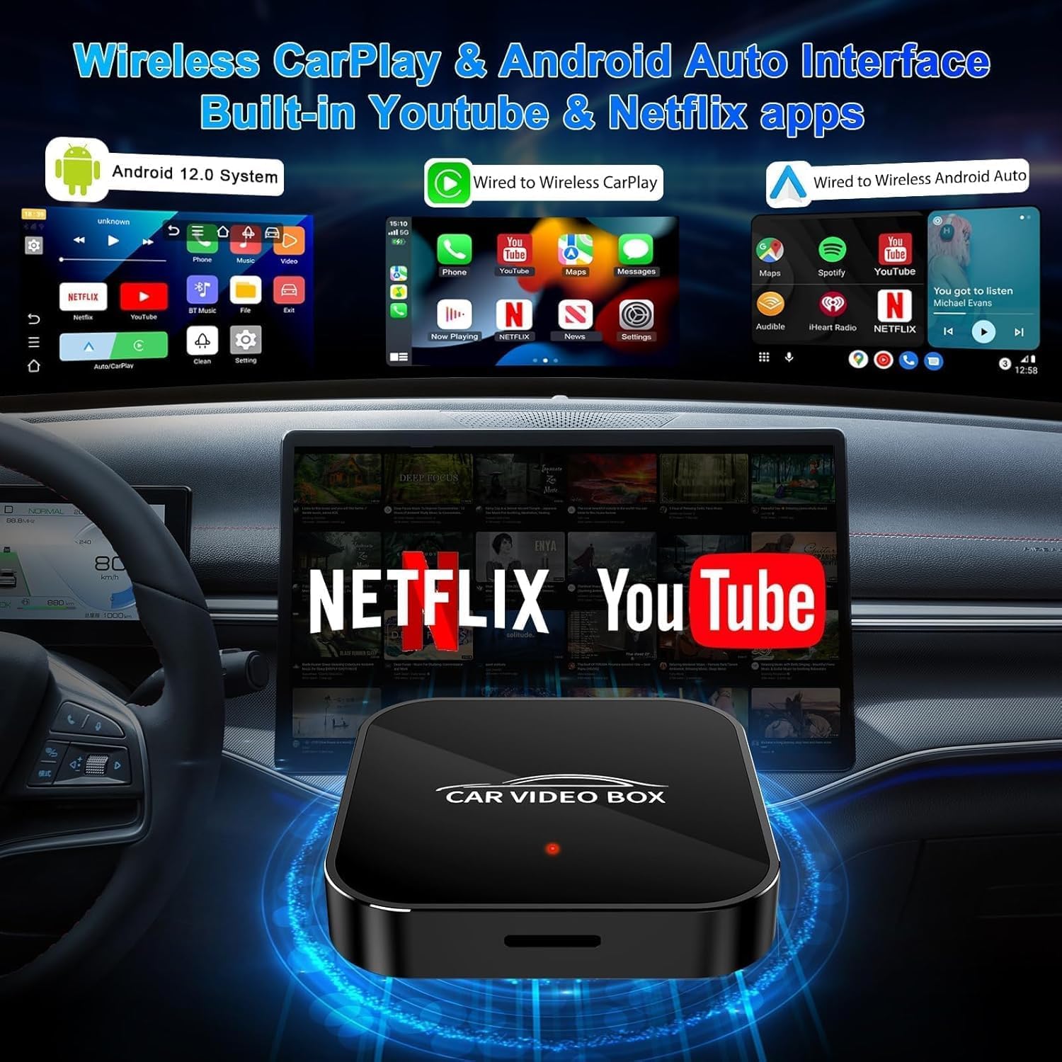 đăPlug and Play & Stable PerformanceăThe Netflix / YouTube CarPlay adapter features a high-performance chip, 5GHz WiFi, and Bluetooth 5.3 for smooth, uninterrupted performance. Enjoy fast response times for music, navigation, and calls. Its plug-and-play design means no extra programs to installâperfect for both kids and seniors! Its advanced chip ensures fast data transfer and lag-free streaming, enhancing your driving experience.